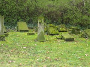 Alte Grabsteine wie die steinerne Eiche erinnern an den Jahrhunderte alten Friedhof, der um die Kirche angelegt war und bis 1914 genutzt wurde. Schlehengebüsch, Eichen und Linden laden zum Verweilen und Innehalten ein.