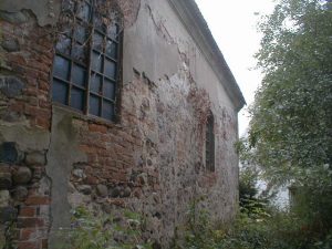 In einer zweiten Bauphase zwischen dem 16. und 17. Jahrhundert entstanden die beiden Langhauswände, die Westwand und der Chor. Als Baumaterial wurden unbehauene und teilbehauene Feldsteine, Backsteine und Ziegelreste verwendet. Der eigenartige Vorsatz zwischen Langhaus und Chor kommt dadurch zustande, da man das Mauerwerk des Chores außen vor die bestehenden Holzständer, im Schiff aber dazwischen gesetzt hat, um innen eine geschlossene Wand zu erreichen. Die rechte Leibung des Eingangs und Teile des Türbogens sind ebenfalls dieser Zeit zuzuordnen.
